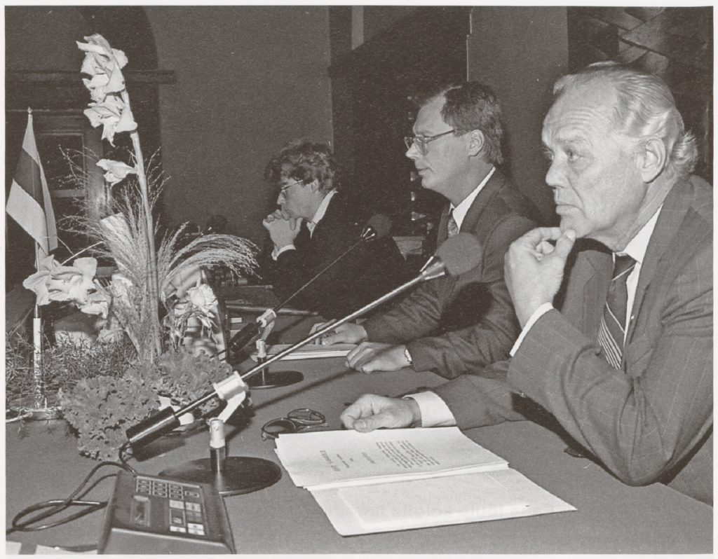 Põhiseaduse Assamblee juhatus (paremalt): Ülo Uluots, Tõnu Anton, Lauri Vahtre