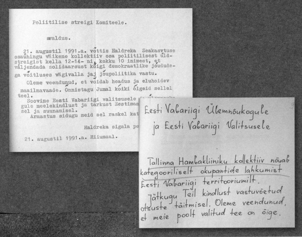 „Eesti Vabariigi Ülemnõukogu koostöös Eesti Kongressi Komiteega otsustas 20. augustil 1991 kinnitada Eesti Vabariigi riiklik iseseisvus. Paljud riigid on juba tunnistanud Eesti Vabariigi iseseisvust või on taastanud diplomaatilised vahekorrad Eesti Vabariigiga. Eesti Vabariigi Valitsus eksiilis tunneb suurt rõõmu nii kiire sündmuste arengu puhul Eesti täieliku iseseisvuse suunas ja loodab, et Eesti ja Nõukogude Liidu vahelised läbirääkimised lõpetavad lähemal ajal Nõukogude Liidu okupatsiooni Eestis. Siis on võimalik Vabariigi Valitsusel eksiilis ja Peaministril Vabariigi Presidendi ülesandeis üle anda põhiseaduslikud õigused ja kohustused Eesti Vabariigi riiklikele organitele Eestis. Eesti Vabariigi Valitsus eksiilis avaldab oma kindlat seisukohta, et Eesti Vabariigi taastamine toimuks 24. veebruari 1918. a. Iseseisvuse manifesti ja Tartu rahulepingu alusel. “