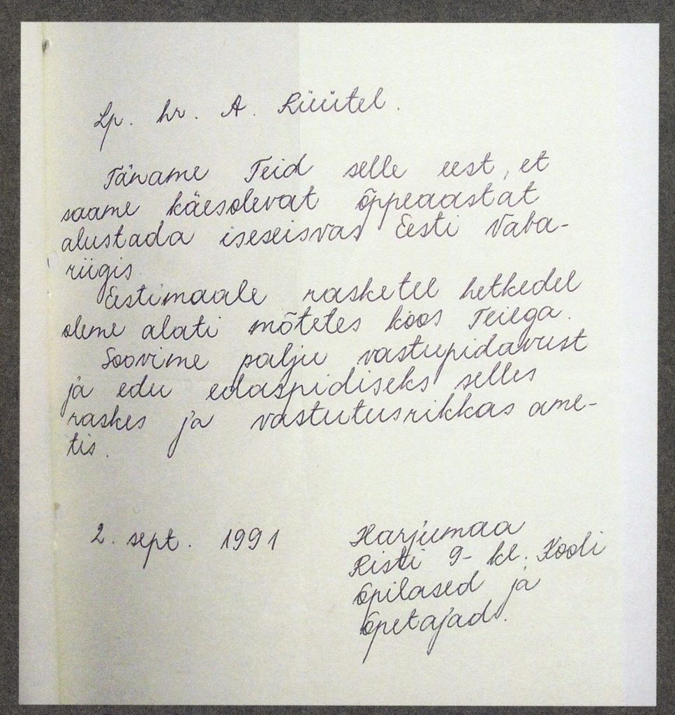 Tänukiri Eesti Vabariigi Ülemnõukogu esimehele Arnold Rüütlile
